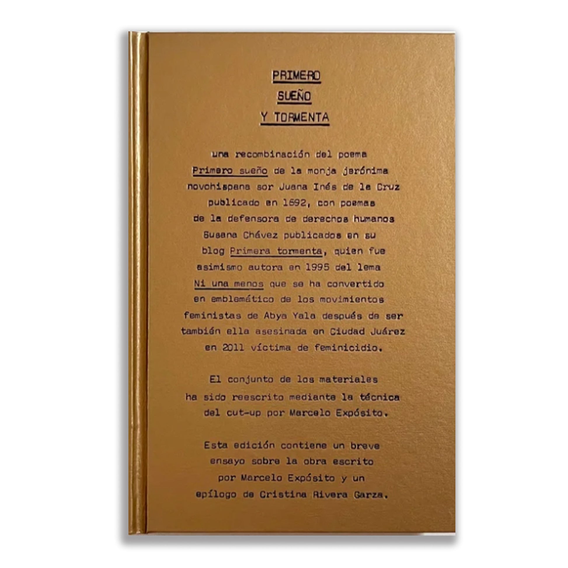 A través del método cut-up, Marcelo Expósito recombina el poema "Primero sueño" de sor Juana Inés de la Cruz (1692) con poemas de la defensora de derechos humanos Susana Chávez, publicados en su blog "Primera tormenta", quien fue autora del lema "Ni una menos".